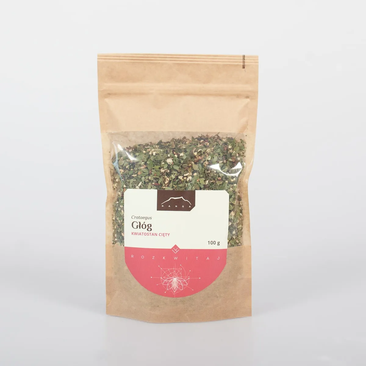Głóg (Crataegus) – to krzew lub małe drzewo należące do rodziny różowatych, o białych lub intensywnie różowych kwiatach, wytwarzające rdzawo-czerwone owoce. Zwykle rośnie w nasłonecznionych miejscach. Występuje powszechnie w wielu krajach Europy, w zachodniej Azji i Ameryce Północnej. Jako surowiec zielarski pozyskiwane są kwiaty, liście oraz owoce głogu. Kwiatostany wraz z liśćmi zawierają całą gamę silnych antyoksydantów – flawonoidów, oraz inne substancje, takie jak: witamina C, fitosterole, glikozydy, kwasy organiczne, garbniki oraz olejki eteryczne. Głóg znany jest ze swojej zdolności do wspierania układu sercowo-naczyniowego. Z tego względu przez wieki stosowany był w medycynie ludowej zarówno Europy, jak i Azji. Napary z kwiatów i liści głogu wzmacniają serce i naczynia krwionośne, wspierają krążenie mózgowe i obwodowe. Ponadto wykazują korzystny wpływ na układ nerwowy, delikatnie uspokajając ciało i umysł.