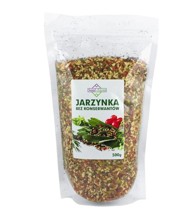 Jarzynka firmy Soul-farm jest uniwersalną przyprawą przeznaczoną do codziennego użytku w każdej dobrej kuchni. Ta oryginalna kompozycja warzyw i ziół o najcenniejszych walorach smakowych i zapachowych znakomicie może uzupełnić smak i aromat naszych ulubionych potraw.