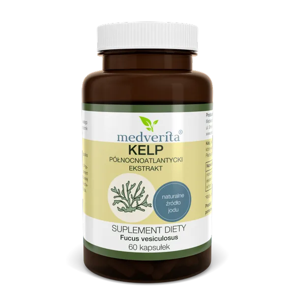 Kelp północnoatlantycki to naturalne źródło organicznie związanego jodu, pozyskiwane z morszczynu pęcherzykowatego (Fucus vesiculosus L.), występującego w wodach Atlantyku i Arktyki. Jod odgrywa kluczową rolę w prawidłowym funkcjonowaniu organizmu, w tym w syntezie hormonów tarczycy. Preparat zawiera ekstrakt standaryzowany na 0,2% jodu, co zapewnia jego kontrolowaną zawartość w każdej kapsułce.