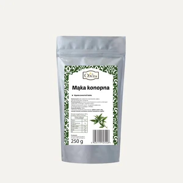 Składniki: Mąka konopna (mielone, częściowo odtłuszczone nasiona konopi siewnej)