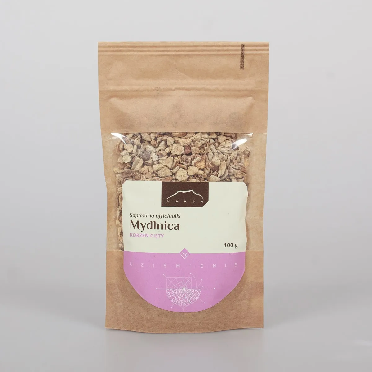 Korzeń mydlnicy lekarskiej (Saponaria officinalis) od wieków wykorzystywany jest jako łagodny, roślinny środek myjący. Zawarte w nim saponiny odpowiadają za naturalne właściwości pianotwórcze i oczyszczające – to dzięki nim roślina zyskała swoją nazwę. Produkt marki Nanga w postaci ciętego, suszonego korzenia pochodzi z Polski i wyróżnia się wysoką jakością oraz czystością surowca.