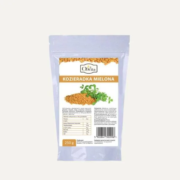 Składniki: mielone, częściowo odtłuszczone nasiona kozieradki pospolitej (Trigonella foenum graecum L.)