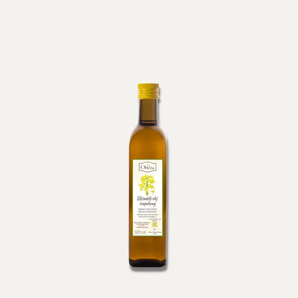 Składniki: 100% oleju rzepakowego tłoczonego na zimno z nasion rzepaku dwuzerowego (bezerukowego)