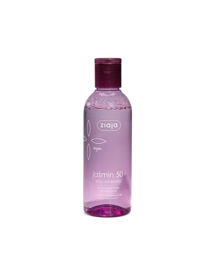 Jaśminowy płyn micelarny z substancją tonizującą pochodzenia naturalnego do codziennej pielęgnacji skóry dojrzałej 50+. Zawiera przeciwzmarszczkowy mikro-kolagen, ekstrakt z czerwonej koniczyny oraz calcium. Produkt testowany dermatologicznie pod kontrolą lekarzy okulistów. Specjalna receptura ogranicza ryzyko migracji składników do worka spojówkowego.