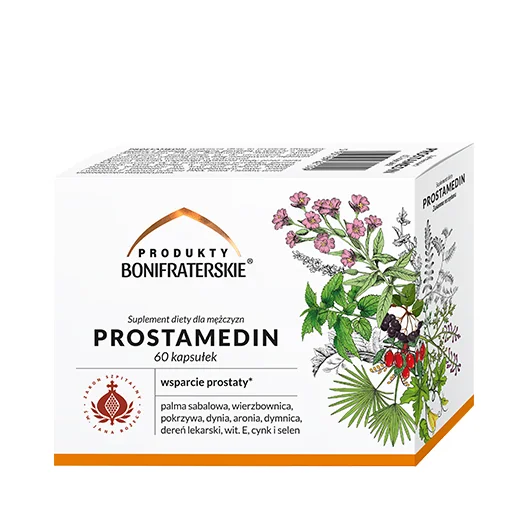 Prostamedin suplement diety to preparat stworzony zgodnie z zakonną recepturą, powstałą w oparciu o 400 lat doświadczenia Zakonu Bonifratrów. Składniki zawarte w preparacie przyczyniają się do utrzymania zdrowej prostaty oraz wspierają pracę dróg moczowych u mężczyzn (palma sabalowa, wierzbownica, pokrzywa). Dymnica lekarska wspomaga wydalania wody przez nerki. Selen przyczynia się do prawidłowego przebiegu spermatogenezy. Cynk pomaga w utrzymaniu prawidłowego poziomu testosteronu we krwi oraz wspiera funkcje rozrodcze i płodność. Ziele wierzbownicy, owoc aronii i witamina E stanowią ochronę DNA, białek i lipidów przed uszkodzeniem oksydacyjnym.