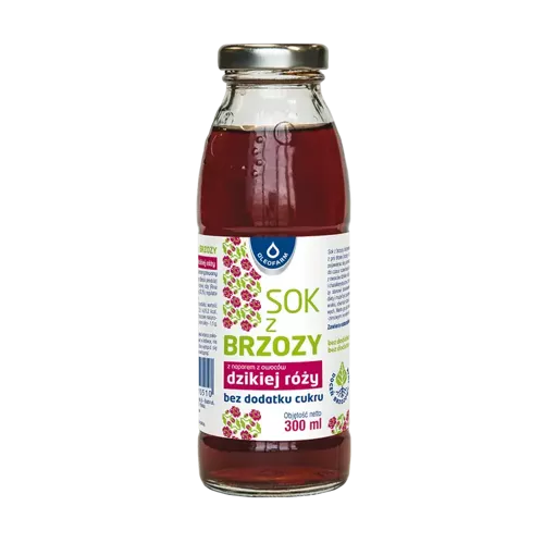 Sok z brzozy z naparem z dzikiej róży, bez dodatku cukru – 300ml