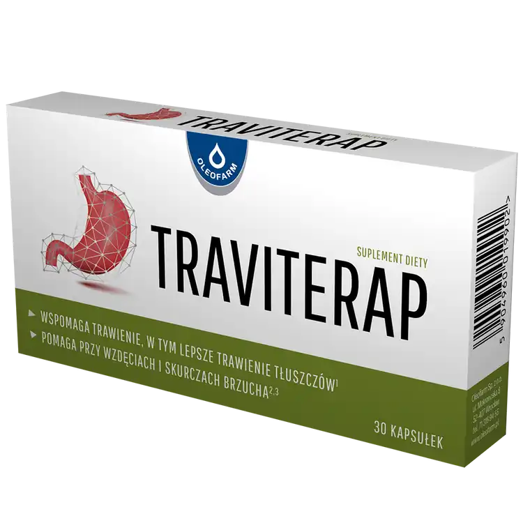 Suplement diety Traviterap zawiera w swoim składzie 5 ekstraktów ziołowych wspomagających pracę układu trawiennego. Ekstrakt z rozmarynu lekarskiego pomaga w prawidłowym funkcjonowaniu wątroby i wspomaga pracę dróg żółciowych, dzięki czemu wspomaga trawienie, w tym lepsze trawienie tłuszczów.