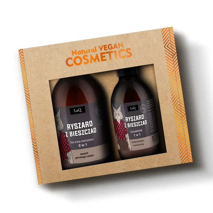 Szampon dla facetów 1 w 1 RYSZARD Z BIESZCZAD 300 ml – naturalny i wegański męski szampon do włosów o działaniu nawilżającym. Zawieram kompleks składników nawilżających, pantenol i ekstrakty roślinne. Na dodatek pachnę męskimi perfumami, pełnymi dzikości i sprytu.